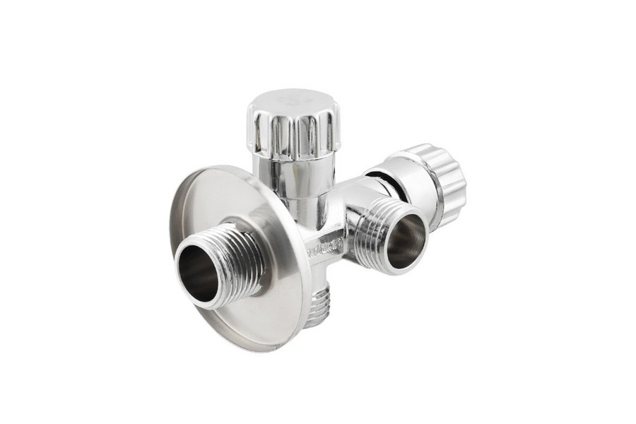 Кран угловой двойной вентильный 1/2"x1/2"x3/4", Raftec